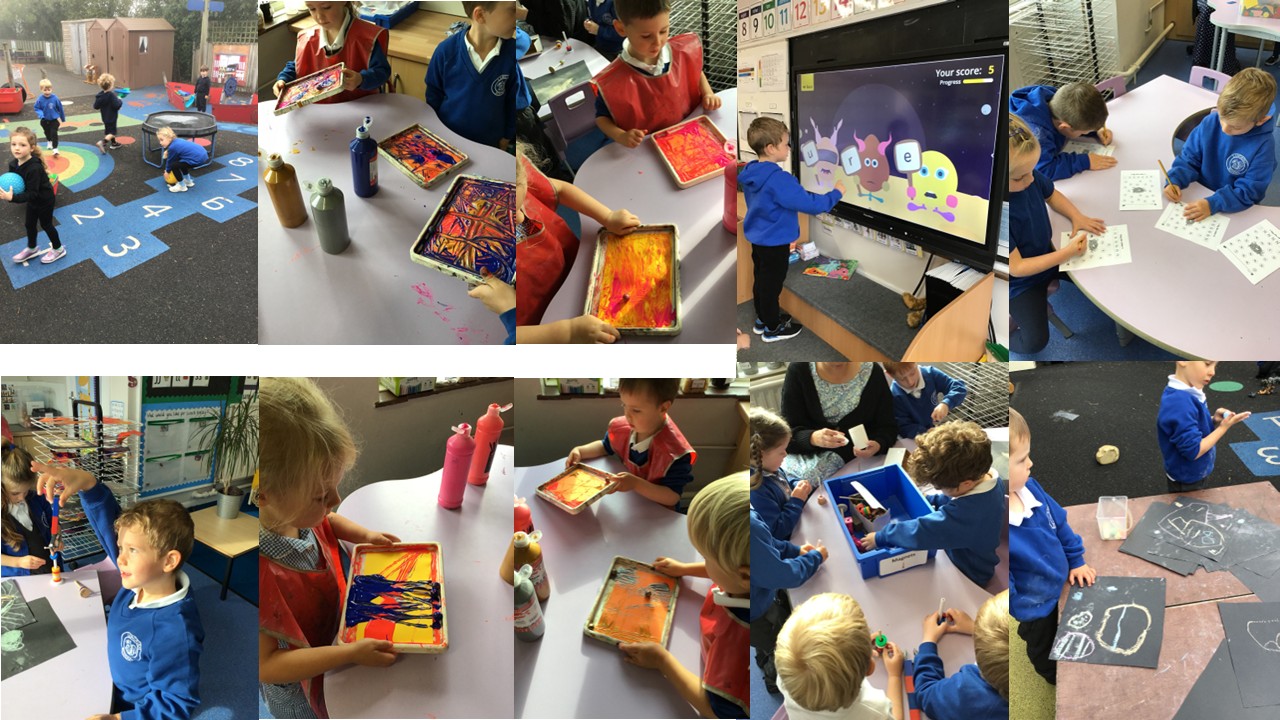 This week has been full of creative fun! We have made our own kites and learnt that the longer the string, the less it flies. Also, that if the children used the art straws, it made them stronger and flies for longer in the wind. For letter 'l' we created our own lunch boxes and drew what would make it a healthy lunch box, but also added what would be our favourite 'little treat'. Next, we created our own moon pictures, drew detail on castles and decorated crowns fit for a king. For letter 'm' we used marbles and paint to mix the colours and create some great patterns. The children said the patterns reminded them of space. In forest school we were looking for nests and created our own using the natural resources around us. For letter 'o' we painted owls with a fork using a forward scraping movement to create a feather effect.