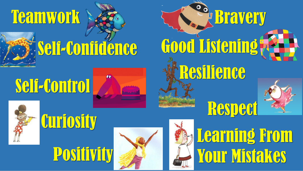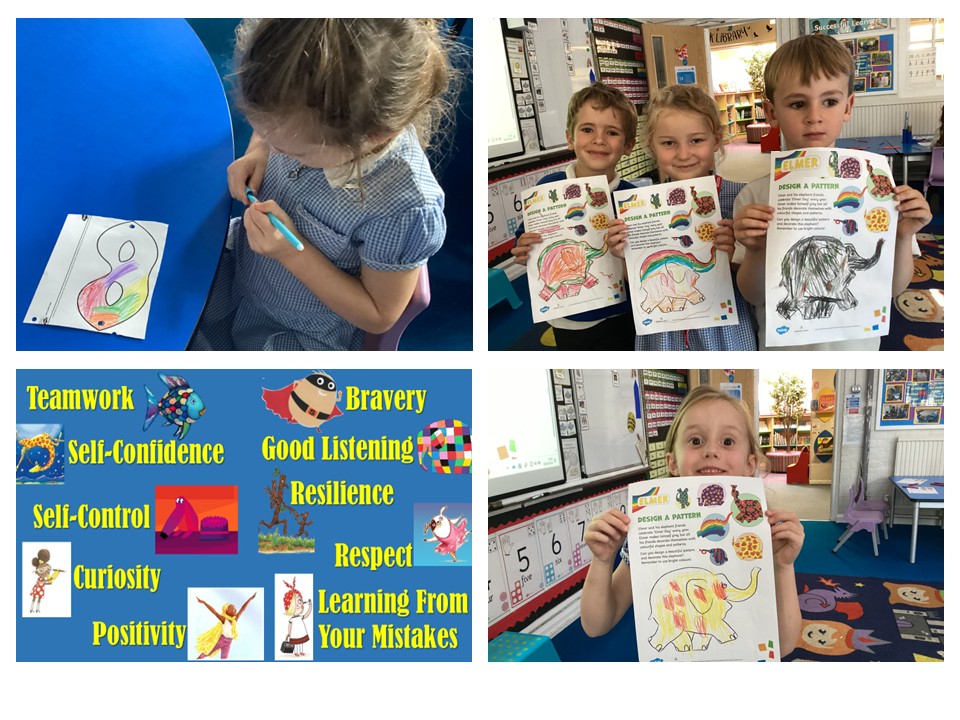 This week we read 'Supertato' (Bravery), 'Amazing Grace' (Positivity), 'Oh No, George!' (Self Control), 'Giraffe's Can't Dance' (Self Confidence) and 'Elmer' (Good Listening).