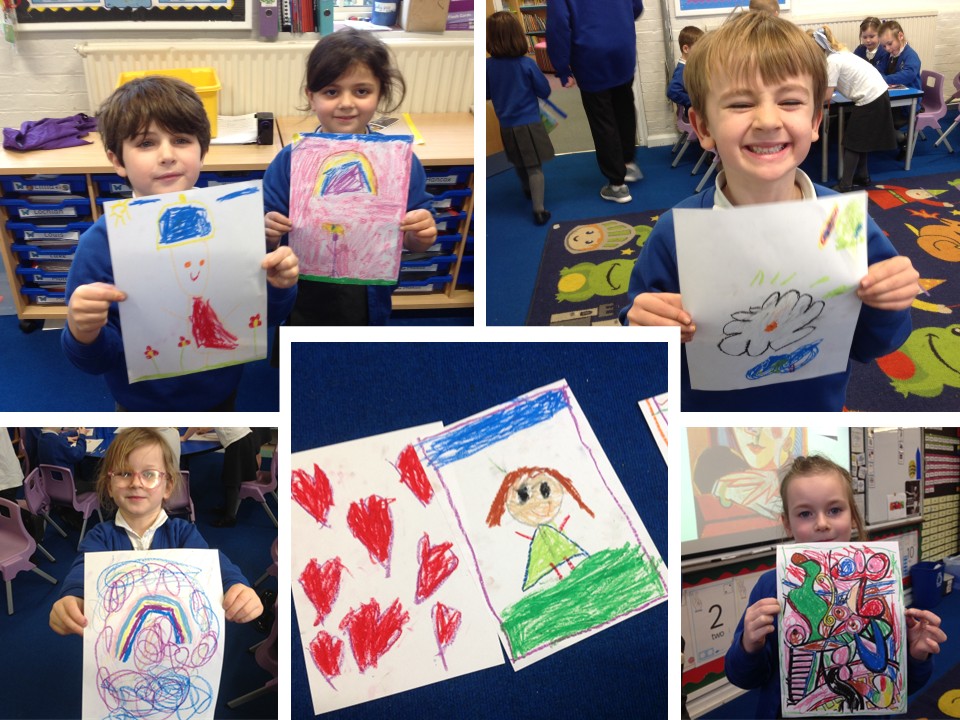 Art this term, we're looking at the many different styles, techniques and media used by the Spanish artist Pablo Picasso. Having already been introduced to Picasso and his works, and after looking at different line-drawing techniques last week, we turned our attention to oil pastels this week. We began by looking at how Picasso used oil pastels in his work, before the children got to experiment with the rich colours and soft textures the pastels can produce. There were some fabulous results, from rainbows and people to abstract artworks, colourful hearts and fabulous flowers.