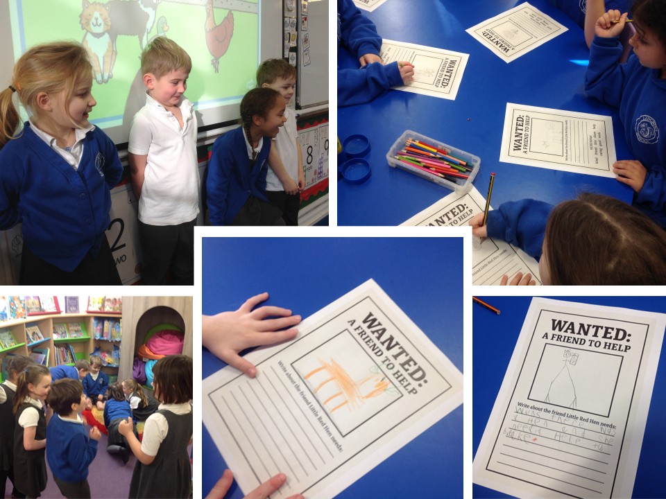 In English, we've been taking on the traditional tale of the Little Red Hen.