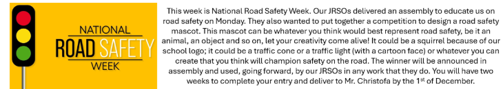 Nativity: As you may have heard, Year 1 and Year 2 will be performing a Nativity this year called ‘Bethlehem Bake off’. The performances will take place on Tuesday 9th December at 1.30 p.m and again on Wednesday 10th December at 1.30p.m. Each child is allocated four tickets to watch the show. Please email the office with the date/s of your choice and how many tickets you require (this can also be split, e.g. 2 adults per show if you wish).
