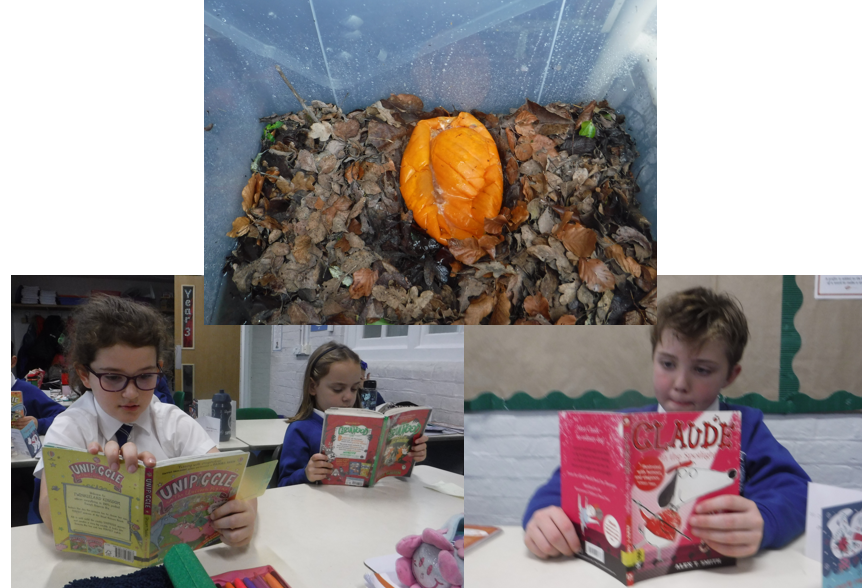 This week, our tired and exhausted Year 3s worked all week to complete a super piece of writing to retell the first two chapters of How to Train Your Dragon. Their pieces were long (very long) and incredibly detailed, using loads of our Autumn term skills to great effect. We have also promoted loads of our fab readers, who are now hungrily devouring some brand-new books! Well done Year 3! In other areas, we have been finishing off our geography unit, looking at why places change, exploring the changes made to London for the Olympic Games in 2012 as well as checking in on our decomposing "Slumpkin" named Slumpy!