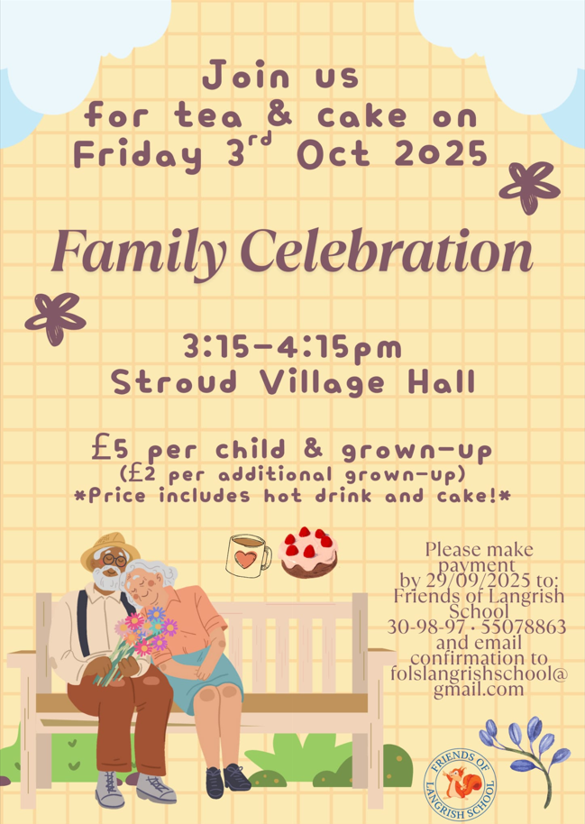 Our bank details are: Friends of Langrish School Sort Code: 30-98-97 Account Number: 55078863