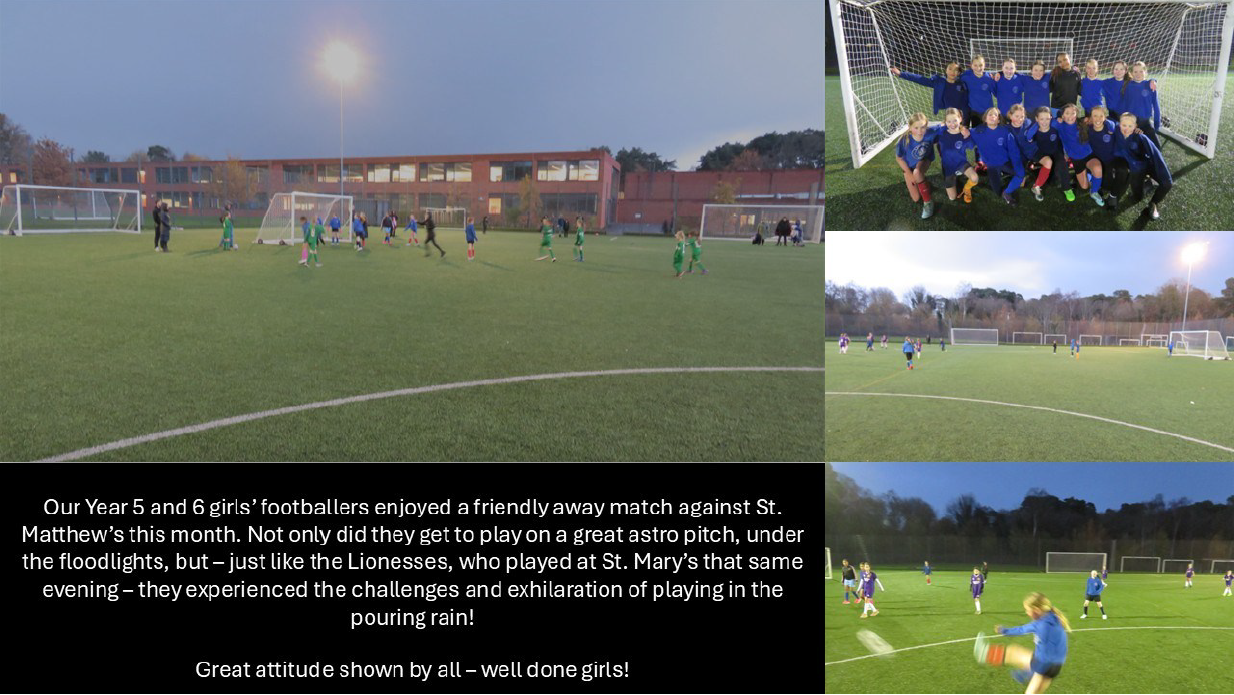 This month it was the turn of our Year 5 and 6 girls to take to the astro under floodlights as they visited Oakmoor School to test their skills against St. Matthews. The girls split into two teams and got lots of great match experience as they won, lost and drew their fixtures during the session. As you can see, they had a great time!