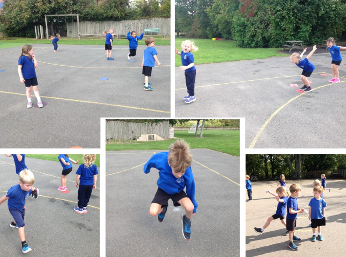 Year 1 literally leaping into action in P.E. by practising some core movement skills, including jumping.