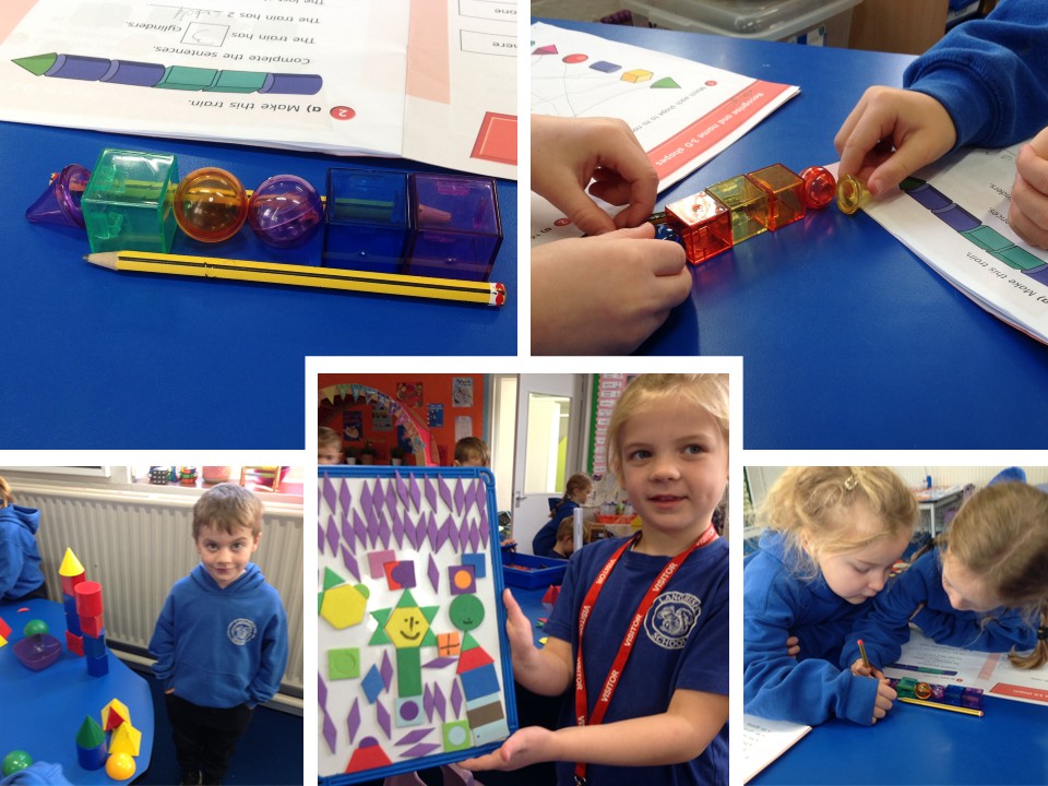 In Maths, we've continued our work on shapes by turning our attention from 3D shapes to 2D shapes. The children went outside on a shape hunt, looking for 2D shapes in and around the school buildings and playground. They also made shapes using peg boards and rubber bands, as well as taking part in a number of other challenges, including sorting 2D shapes into trays, identifying pictures of shapes around the room, and even using their shape detective skills to recognise the three shapes hidden behind the mystery doors using just their sense of touch.