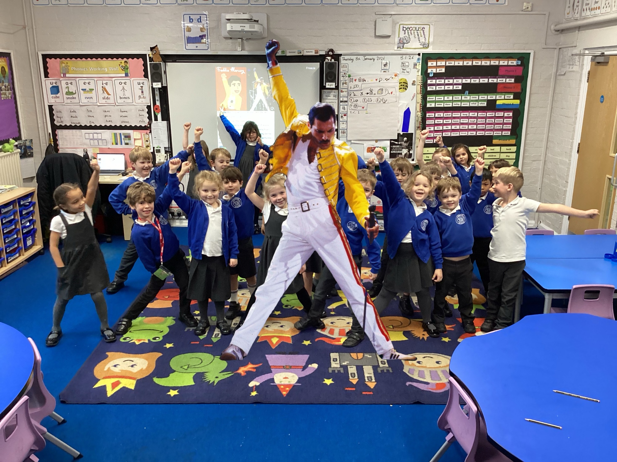 We launched our 'People Project' this week with a focus on 'How to be a Rock Star', and for Year 1 that rock star was Freddie Mercury. We listened to the music of Queen and learnt about Freddie Mercury's life using the 'Little People, Big Dreams' book. The children watched Queen's Live Aid set from 1985, and we looked at the way Freddie used power poses to make himself look and feel like a rock star. Obviously, we had to try some rock star power poses out for ourselves, and even managed to join Freddie on stage using the green screen.