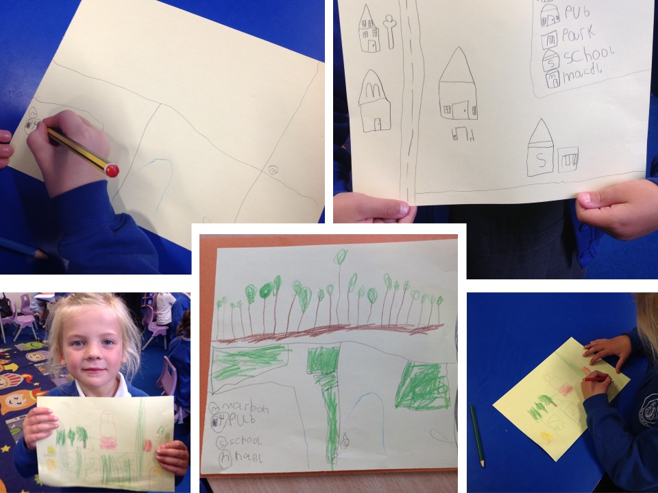 Using an electronic map, we explored the roads and features of our local area. The children then set about creating their own maps, including important landmarks they often pass on their way to school. They even labelled the main roads, and included symbols and a key to show what they all represented (no prizes for guessing what the big yellow 'M' represents!)