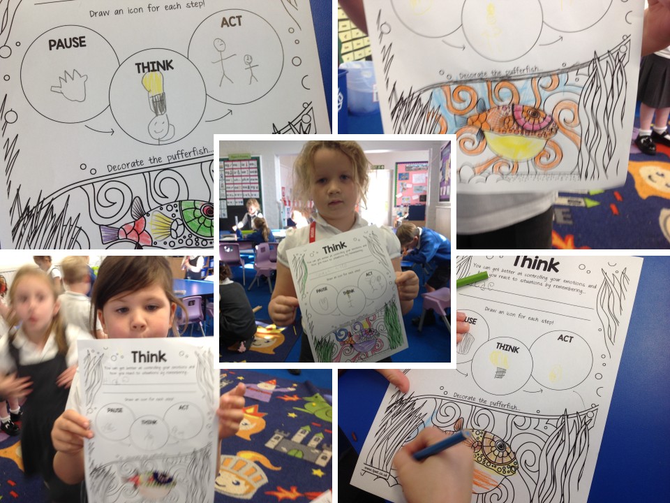 One of the Learning Behaviours we look for every day is self-control, and that was the focus of our PSHE lesson this week. Using the Waves of Wellbeing resources, we learnt about the northern pufferfish and how they puff up when they feel anxious or threatened. However, this can be quite uncomfortable for the fish and makes it difficult for them to continue swimming forward. To help them be less like the pufferfish, the children learnt some techniques to help them think before they react, which will help them to avoid upsetting themselves or those around them