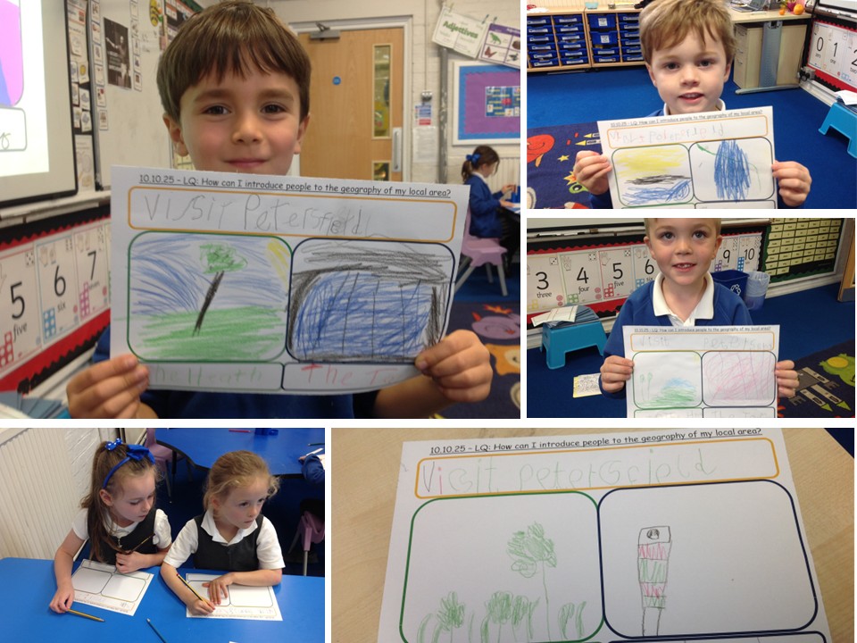 We've been learning about our local area in Geography this term, and part of our topic was for the children to create posters enticing visitors to come to Petersfield. The children had to choose two things to draw - one example of physical geography and one example of human geography - that they thought might get tourists jumping into their cars and heading up the A3 in our direction. Places like The Heath and the Country Park were popular, and the Library and Town Square also made an appearance...alongside McDonald's!