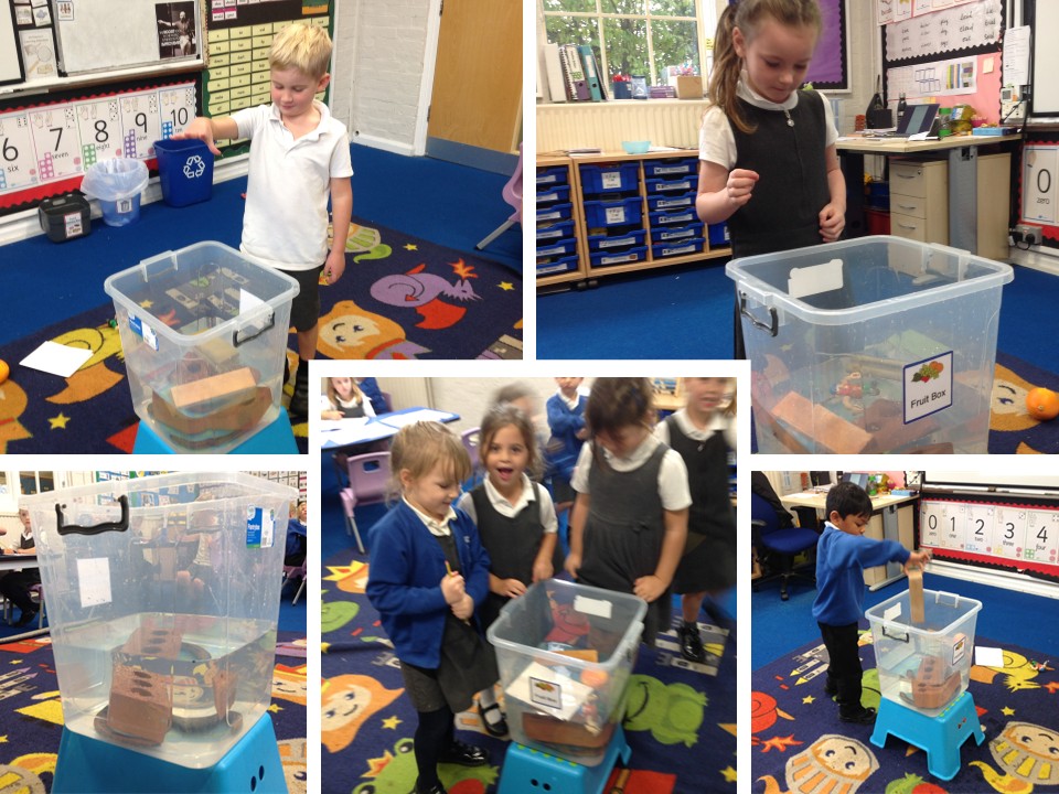 The children looked at some objects to see what materials they were made from, then made some predictions about which materials they thought would float or sink when they were dropped into water. We then put the items into our water tank one by one and recorded the results, some of which surprised the children.