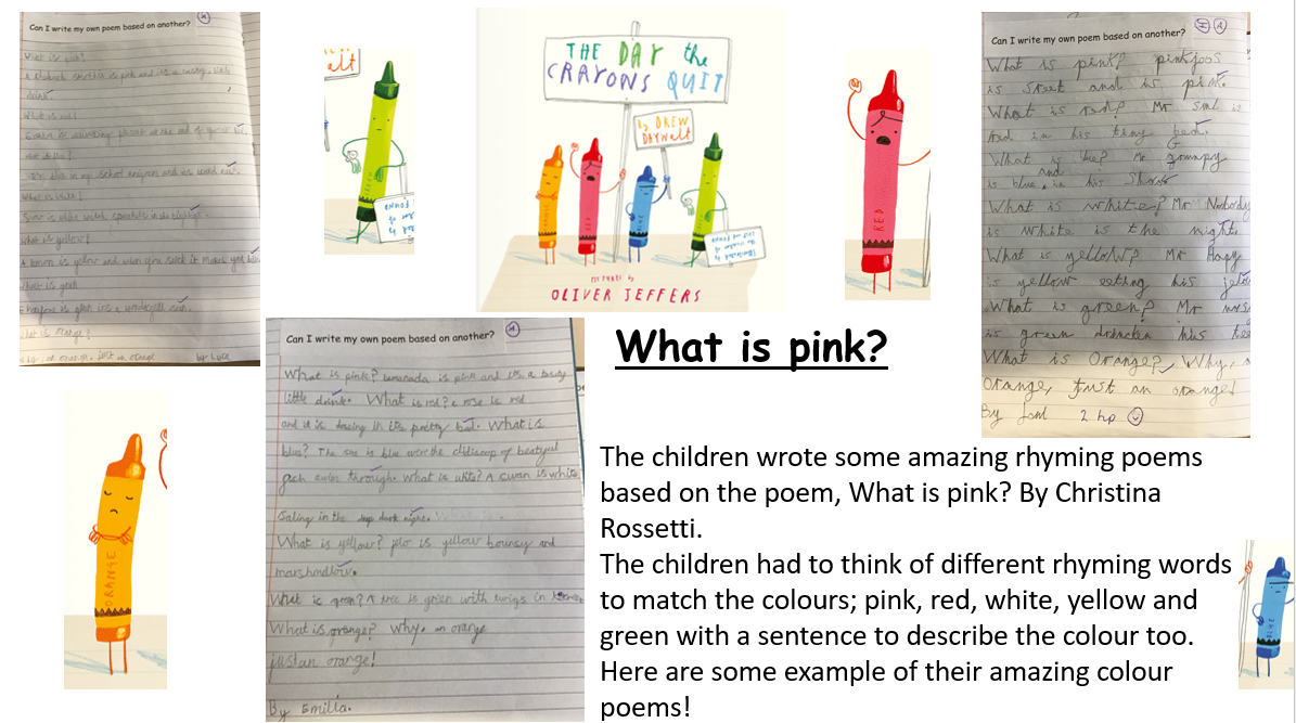 Please read with your child every day for 10–15 minutes. Record this in their reading records (2/ 3 times a week). The children have been reminded to change their books independently and as needed. Please use the blooms questions at the back of the reading records to help with questions when they have read some of the text.