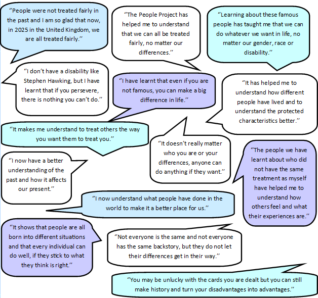 Having finished the People Project in full (this is now embedded in our practice and will continue each half-term), we wanted to complete some pupil voice on its impact. This is captured below: